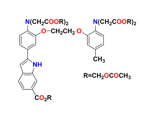 Indo-1是一種細(xì)胞生物學(xué)常用的鈣離子熒光探針,Indo-1能特異性地結(jié)合Ca2+,同時(shí)可發(fā)出熒光,Indo-1是極性大的酸性化合物,無(wú)法進(jìn)入細(xì)胞內(nèi),使其成為Indo-1/AM,該變化既增加了酯溶性又消除了負(fù)電荷,極大的提高了細(xì)胞滲透性。